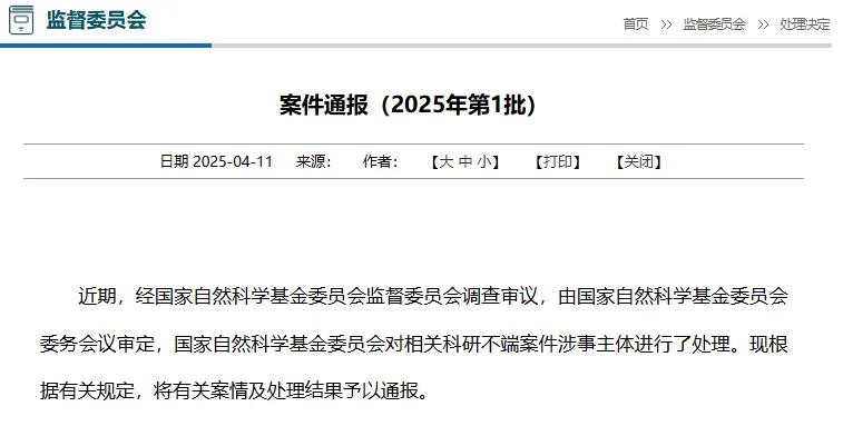 "4月11日,国家自然科学基金委员会公布了2025年查处的不端行为案件..."