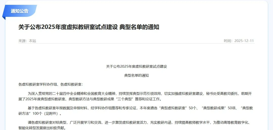 "12月11日,虚拟教研室项目秘书处和全国高等学校教学研究中心发布《..."
