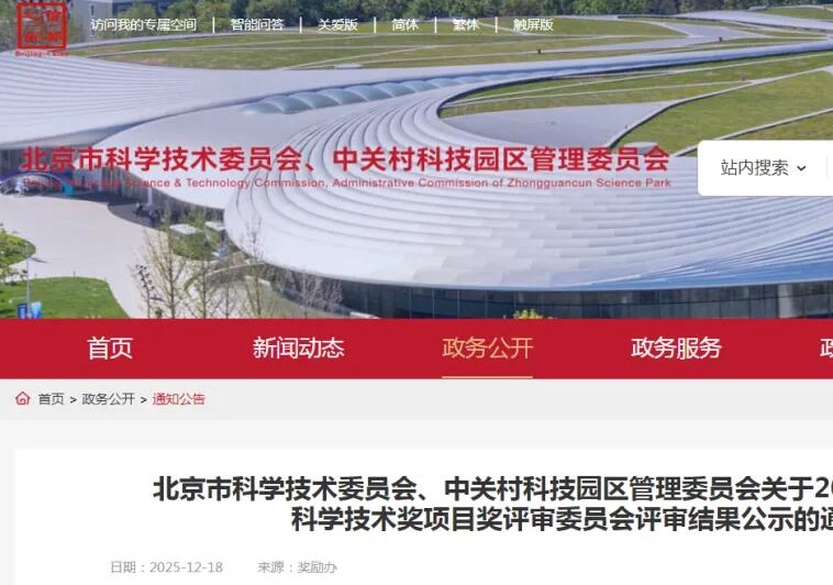 一等奖50项,2025年度北京市科学技术奖项目奖评审委员会评审结果公示