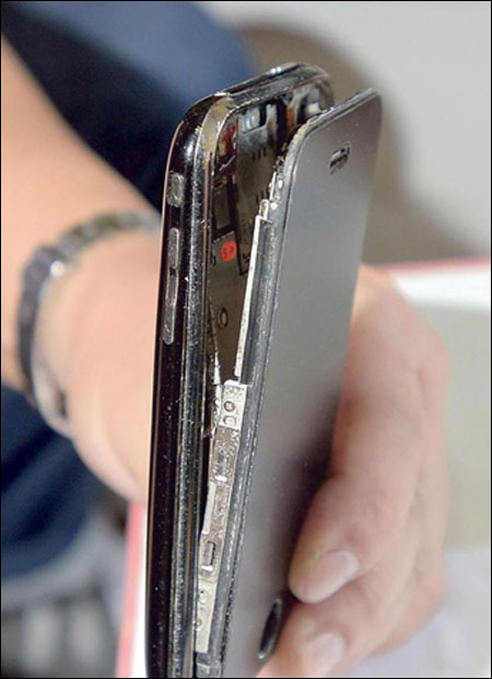 据悉,2013年11月10日有香港市民投诉,其3年前购买的苹果iPhone 3Gs手机发胀爆裂。事主将手机充满电后拔除电源,启动后闲置一旁,2天后发现手机爆裂,露出内部电池,裂缝约有一毫硬币直径。针对这一问题,苹果维修部回复指出“电池寿命完结会与机身分离,属自然物理现象”。