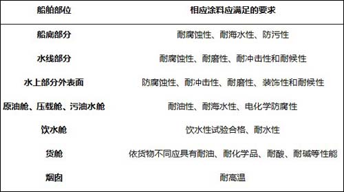 总的来说,船舶不同部位的涂料须满足以下要求: