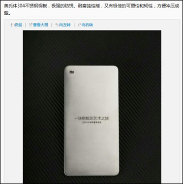 7月14日,雷军在微博披露了下一代小米手机机身的材料:奥氏体304不锈钢钢板。据称这种材料可以带来极强的防锈、耐腐蚀性能,又有极佳的可塑性和韧性,方便冲压成型。