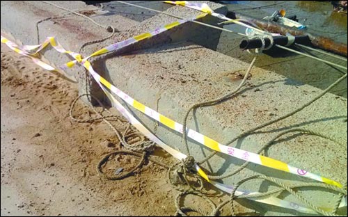 在现场发现,码头上的护栏锈迹斑斑,部分已经脱落,见不到护栏的踪影,有些虽然还直立着,但已经起不到防护的作用。因为紧靠大海,少了护栏存在安全隐患。也有护栏脱落的情况,整体斜靠在堤坝边上的突起上,等于是护栏“倒立”了,不仅起不到防护作用,中间短的铁管竖立着,还存在安全隐患。 工作人员表示已提交申请,维修资金通过后就可尽快进行维修。