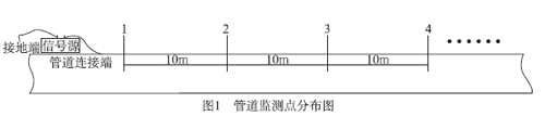 该系统的设计思想就是通过物联网技术将传统的外防腐检测工艺变成一种智能化(具体实例,在应用上的优势)的、常态化的监测手段,随着物联网技术发展的成熟化,为智能化监测手段提供了可靠的技术保障。我们可以将目标管道按照等距分布(比如10m)的方式,在管道上设置监测点,如图1管道监测点分布图所示。在管道上添加一个信号发射装置,对目标施测管道发射信号;在监测点设置传感器,采集检测相关数据,通过无线传输的方式,把采集的数据传输到系统工作平台,根据监测点的电流信号和监测点的位置信息,生成一个检测数据库,如表2金属管道外防腐层检测电流数据库所示,其他相关数据如管体纵向电阻等也可以通过相应的传感器获取;经过相关软件的数据分析,推算出防腐层的老化等级,输出管道外防腐层检测评价报告,最终评定管道的外防腐层状况。此外,还可以通过在应用层增加一些辅助功能,给提供用户目标管道的相关属性信息,比如空间位置、对地埋深、与其他相邻管线的空间关系等;如果一旦防腐层老化严重甚至出现破损泄漏的位置,系统还可以帮助用户做出应急决策处理,比如分析泄漏点控制阀门的位置。通过这种智能化的监测手段,能够实现对管道的常态化实时检测,保证管道的正常运行,延长使用寿命,一旦出现预警提示,可以快速做出反应,避免或者减小损失。
