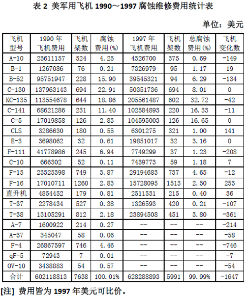在空军腐蚀费用研究中有以下的一些重要的分析评价结果: