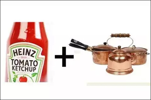 发暗、生锈的铜厨具和黄铜装饰品都可以交给番茄酱。在铜器表面涂上番茄酱放置5-30分钟,用旧布头或者抹布擦拭,能轻松除去锈斑,还原光泽。