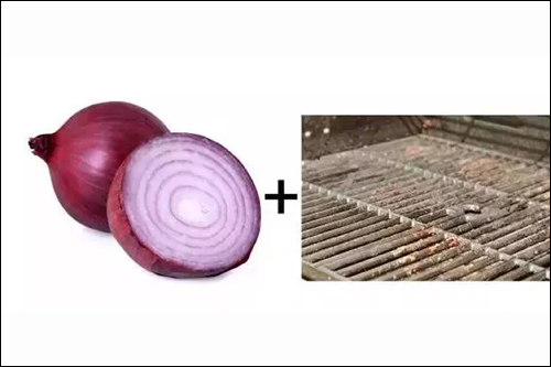 洋葱的切面可以去除烧烤架或者烤箱栅格上的油渍和残渣。清洁前最好把炉子烧热,洋葱切半,拿叉子或筷子插上,用切面摩擦要清洁的部位。再也不需要费力地用刷子和刮刀做清洁了。