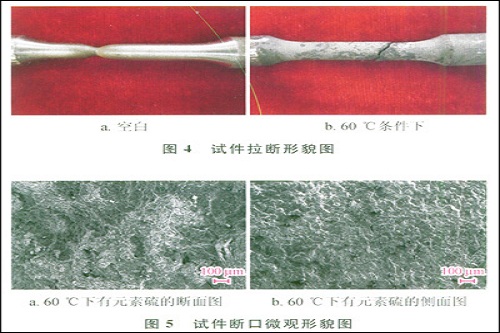 5)开展了元素硫存在条件下碳钢应力腐蚀开裂性能研究。结果表明,元素硫存在条件下,碳钢SSC敏感性升高,断口面上主要为放射区,由塑性断裂转变为脆性断裂。