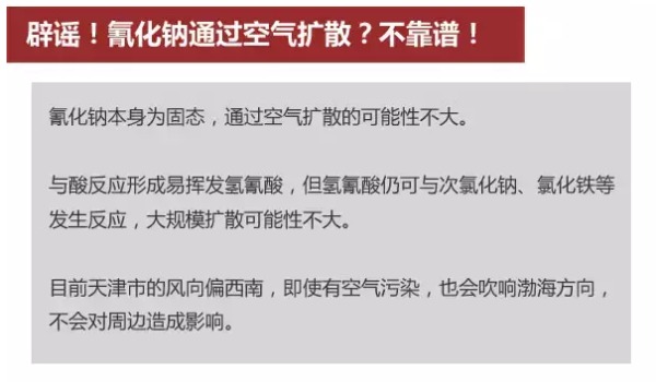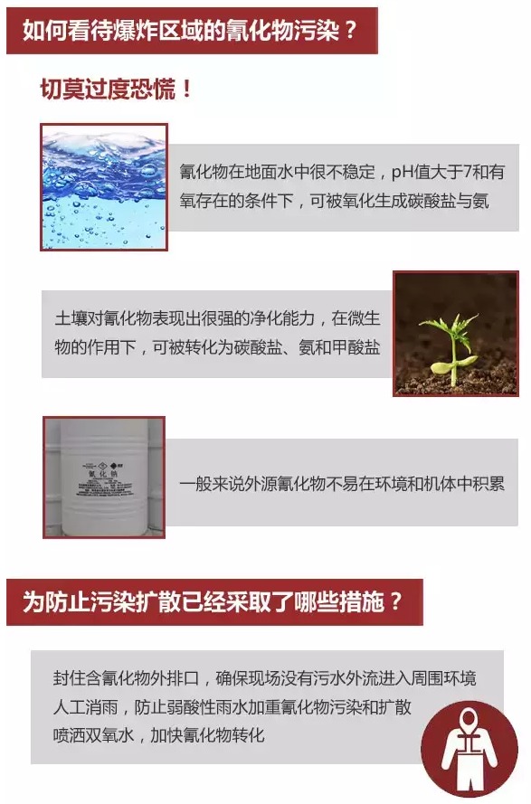 全国人大代表、天津市环保局环境应急专家组组长包景岭透露,现场处置人员正在集中力量在隔离区内对氰化物污染进行无害化处理,氰化物污染可以得到有效控制。