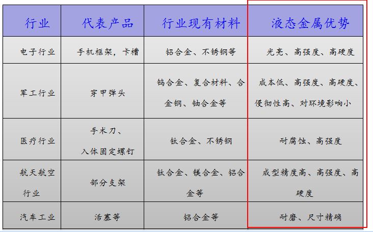 另外,块体非晶还在医疗器械、航空航天已有应用。