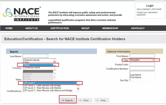 直接登陆搜索页面:http://www.naceinstitute.org/cstm/education/certification/certsearch.aspx