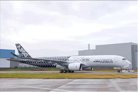 这架飞机身披代表碳纤维材料结构的特别涂装,代表A350XWB宽体飞机主体结构由碳纤维复合材料制成。这架生产序列号为MSN2的飞机也是首架装有完整客舱内饰的A350XWB测试飞机。A350XWB宽体飞机是空客公司推出全新双通道远程宽体客机。空客公司为这一项目共生产五架测试飞机,用于进行试飞和取证,其中两架装有完整客舱内饰。首架A350XWB宽体飞机计划于2014年下半年交付使用。