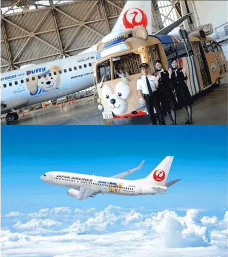 为庆祝达菲熊进驻东京迪士尼海洋公园十周年,日本航空推出4架主题为“幸福旅程快线”(Happy Journey Express)的特别涂装机,日航也推出了与达菲熊飞机同款的摆渡车。
