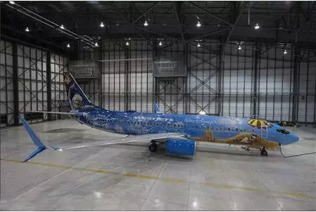 来自美国和欧洲的画家们经过265个小时的设计,21天的日夜兼程,成功的喷绘出了以冰雪奇缘为主题的飞机波音737。