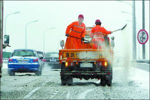 据了解,融雪剂一般有两大类:一类是以醋酸钾为主要成分的有机融雪剂,腐蚀损害较小,但价格高,一般用于机场等场所;另一类则是以氯盐为主要成分的无机融雪剂,如氯化钠、氯化钙、氯化镁和氯化钾等,通称作“化冰盐”,其价格便宜,被广泛使用,但腐蚀损害也较大。