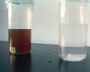 一块轮圈样本浸泡在狗尿里,一块浸泡在雨水中,最后一块作为参照样本,浸泡时间为三天。