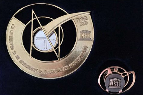 法国当地时间2月5日,中国科学院院士、中科院理化技术研究所研究员江雷受邀参加了联合国教科文组织的颁奖典礼。为表彰其在超浸润纳米界面材料领域的特殊贡献,联合国教科文组织授予江雷该组织第五届纳米科学与技术特别贡献奖章(UNESCO Medals for contributions to the development of nanoscience and nanotechnologies)。2014年诺贝尔物理学奖获得者Isamu Akasaki与江雷同获该奖。该奖章设立于2010年,已颁布24枚,往届得主包括中国科学院院长白春礼、2000年诺贝尔物理学奖获得者Alferov等。