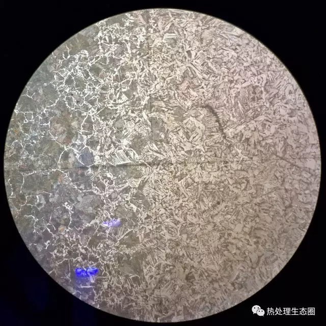 这是手机拍摄图片,不是金相图谱。图中紫色是显微镜镜头产生的光斑。