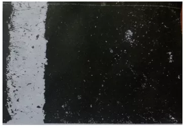 图13为W18钢硬块低倍组织的照片(4%HNO3酒精溶液浸蚀),图中白色的为硬块、灰黑为钻头槽部。