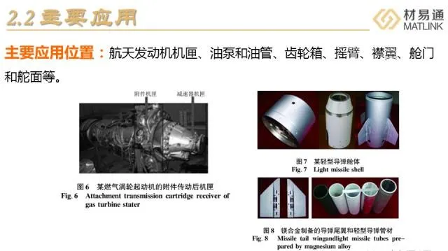 轻量化是提高武器装备作战性能的重要方向。镁所具有的轻质特性决定了镁合金是生产航天飞行器、军用飞机、导弹、高机动性能战车、船舶的必不可少的结构材料,如可做火箭头、导弹点火头、航天器元部件以及照明弹等。因此,大力开发镁合金应用范围是国防现代化的需要。