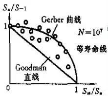 上式称为Goodman直线,所有的试验点基本都在这一直线的上方。直线形式简单,且在给定寿命下,由此作出的Sa-Sm关系估计是偏于保守,故在工程实际中常用。