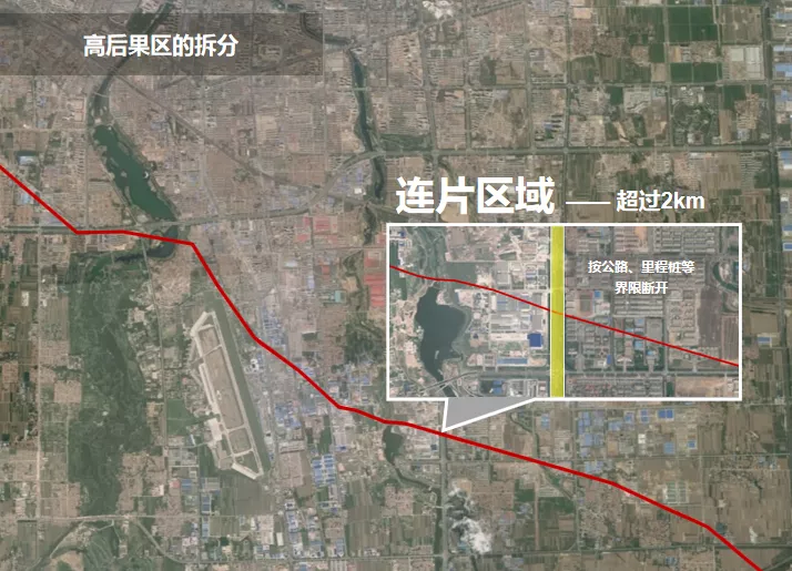 当出现连片的区域,为方便管理,可按道路或里程桩界限断开。