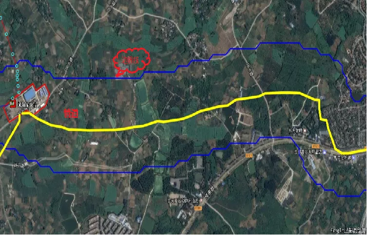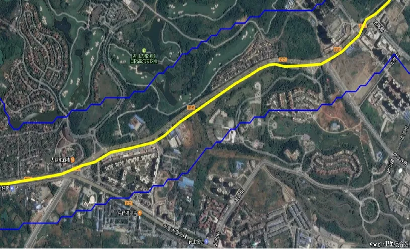 基于卫星地图定位划分的方法是将管道在卫星地图中进行标记,利用地图软件以管道为中心在两侧按照高后果区识别的要求划分带状图,通过对带状图中的建构筑进行识别划分高后果区。