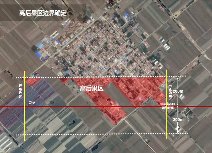 1、识别高后果区时,高后果区边界设定为距离最近一幢建筑物外边缘200m。