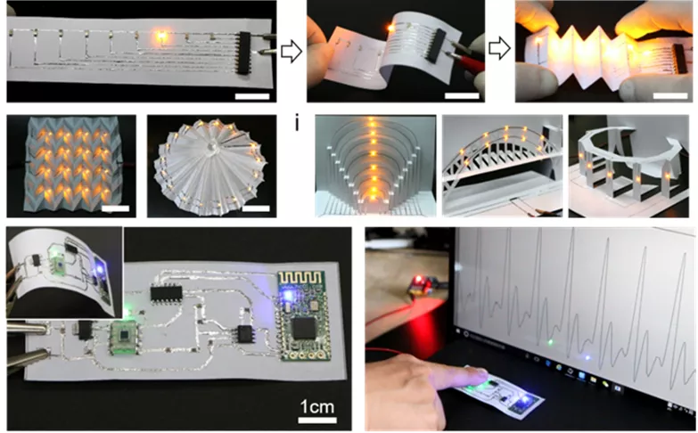 图3基于液态金属打印技术实现的导电图案与功能应用电子