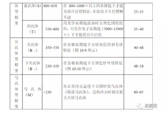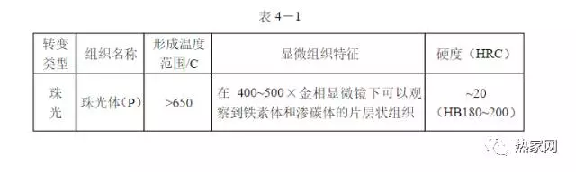 共析钢过冷奥氏体在不同温度等温转变的组织及性能列于表4-1中。