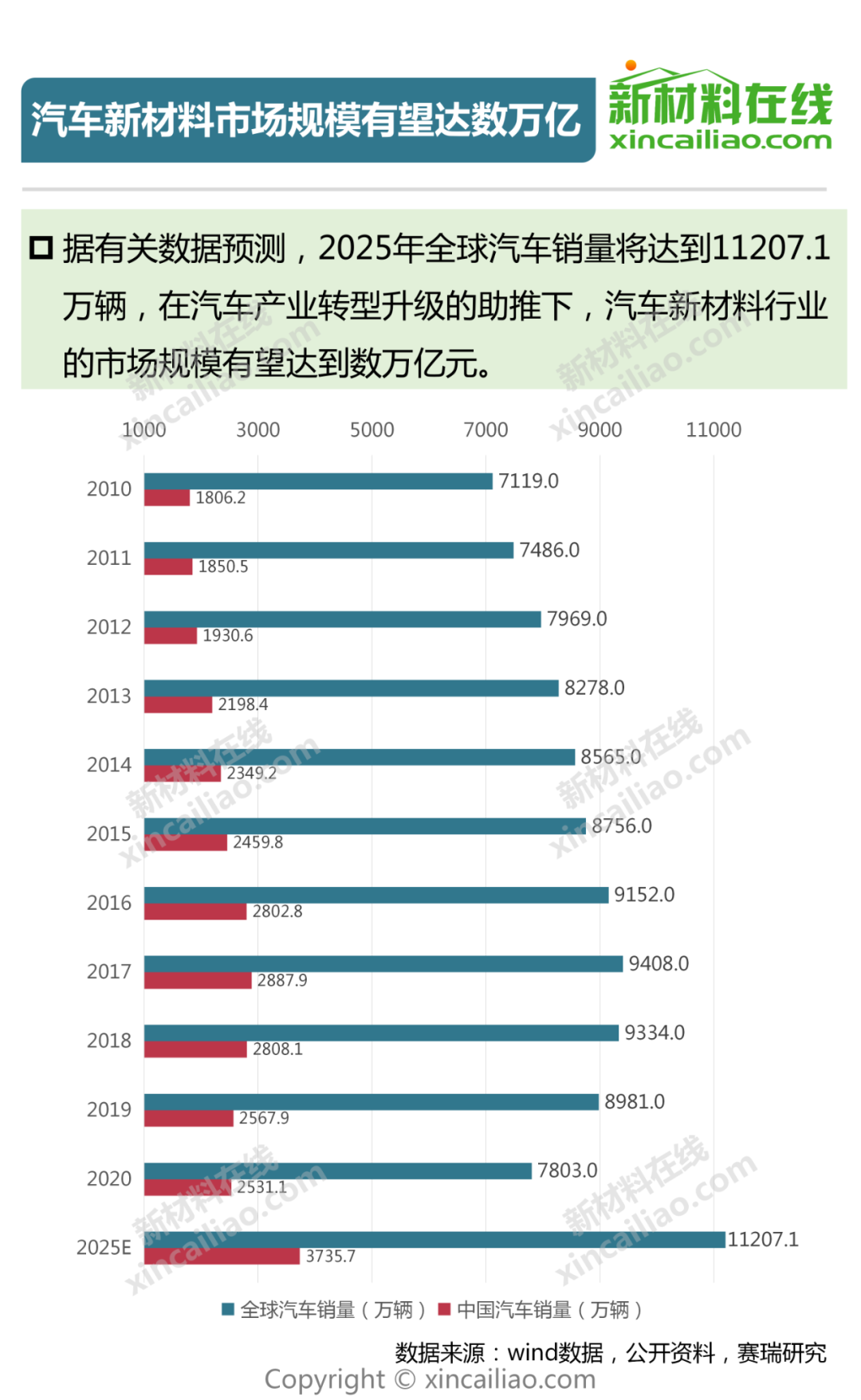 据相关数据预测,在汽车产业转型升级的助推下,汽车新材料行业的市场规模有望达到数万亿元。
