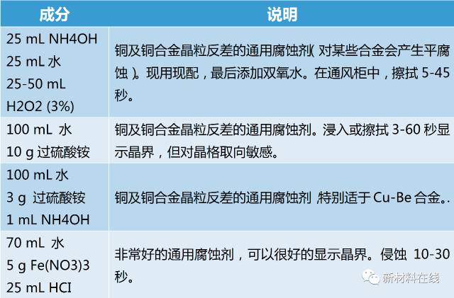 多相合金的化学浸蚀,在腐蚀过程中腐蚀剂对各个相有不同程度的溶解。必须适用合适的腐蚀剂,如果一种腐蚀剂不能将全部组织显示出来,就应采取两种或更多的腐蚀剂依次腐蚀,使之逐渐显示出各相组织,这种方法也叫选择腐蚀法。另一种方法是薄膜染色法。此法是利用腐蚀剂与磨面上各相发生化学反应,形成一层厚薄不均的膜(或反应沉淀物),在白光的照射下,由于光的干涉使各相呈现不同的色彩,从而达到辨认各相的目的。
