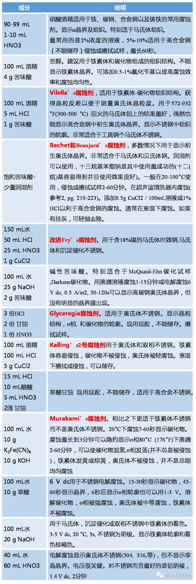 常见金属腐蚀剂