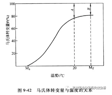 高碳钢和许多合金钢的MS点在室温以上,而Mf点在室温以下,则淬火冷却到室温将保留相当数量未转变的奥氏体,这个部分叫残留奥氏体;如果为使残留奥氏体全部转变“冷处理”,可以放入液氮中处理。