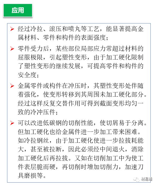 金属材料的强化途径有两个,一是提高合金的原子间结合力,提高其理论强度,并制得无缺陷的完整晶体,如晶须。已知铁的晶须强度接近理论值,可认为这是因为晶须中没有位错,或只包含少量在形变过程中不能增殖的位错。可惜当晶须的直径较大时,强度会急剧下降。另一个是向晶体内引入大量晶体缺陷,如位错、点缺陷、异类原子、晶界、高度弥散的质点或不均匀性(如偏聚)等,这些缺陷阻碍位错运动,也会明显地提高金属强度。事实证明,这是提高金属强度最有效的途径。