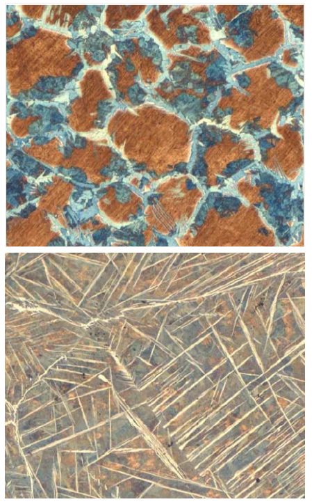 金属材料内部组织结构极其丰富。就拿我们最常见的工程材料钢铁来说,其基本组织有奥氏体、铁素体、渗碳体、珠光体、莱氏体、马氏体、贝氏体等,还有很多不同类型的夹杂物。同种材料在不同的处理状态下其显微组织不同,力学性能差异也很大。不同材料在同种处理状态下其力学性能相近。同种显微组织使用不同的浸蚀剂,颜色也会不同。显微镜的照明方式不同,同种组织结构也会呈现出不同的特征。