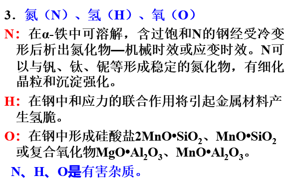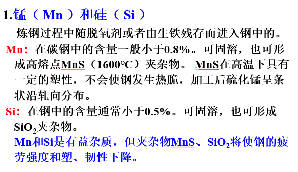 杂质:冶炼时由原材料以及冶炼方法、工艺操作而带入的化学元素