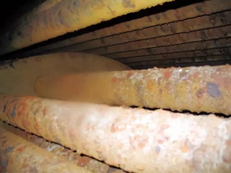 低温腐蚀是受热面在壁温较低的条件下,硫酸蒸汽凝结在受热面上产生的腐蚀现象。烟气中的与结合后生成蒸汽,在尾部受热面,温度较低,一旦温度低于酸露点,便凝结在受热面上,进而对金属表面造成腐蚀。燃料中硫含量越多,会显著提高烟气中的酸露点温度,也就是说,硫酸蒸汽更容易达到酸露点凝结为硫酸溶液,进而发生腐蚀。这样,一旦受热面壁温低于酸露点温度,低温腐蚀就形成了。一般发生与省煤器尾段、空预器等部位。