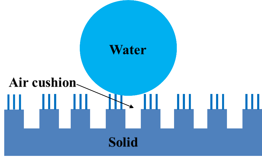 气-液-固三相平衡时,水滴接触角大于150°且滚动角小于10°的性质称之为超疏水性。