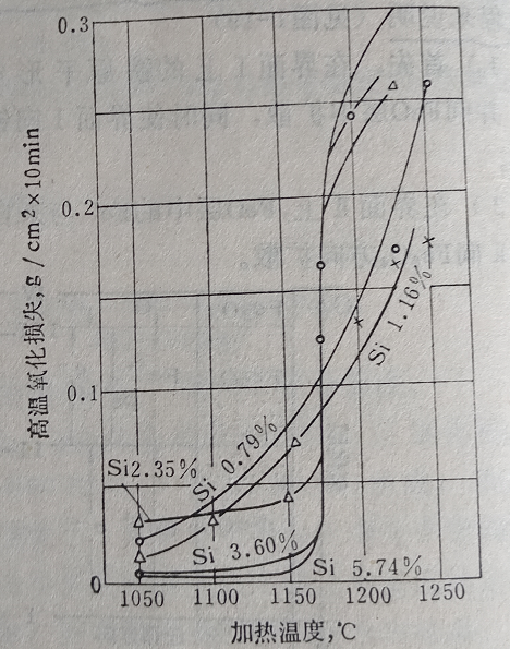 图9 铁硅合金的氧化烧损与加热温度的关系