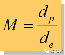 如果要求样品表面扫描的电子束直径为dp,电子源(即电子枪第一交叉点)直径为de,则电子光学系统必须提供的缩小倍数M 为: