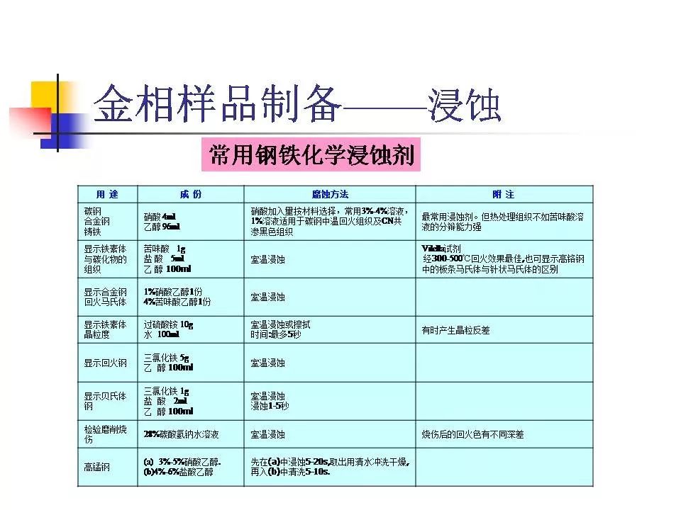 首先,我们先将常见的40种侵蚀剂及其适用对象与方法简单列在下表中