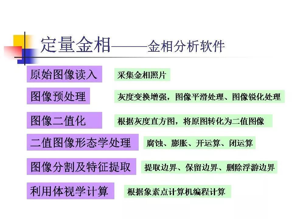 金相分析是金属材料试验研究的重要手段之一,采用定量金相学原理,由二维金相试样磨面或薄膜的金相显微组织的测量和计算来确定合金组织的三维空间形貌,从而建立合金成分、组织和性能间的定量关系。接下来了解一下金相分析的整个过程。