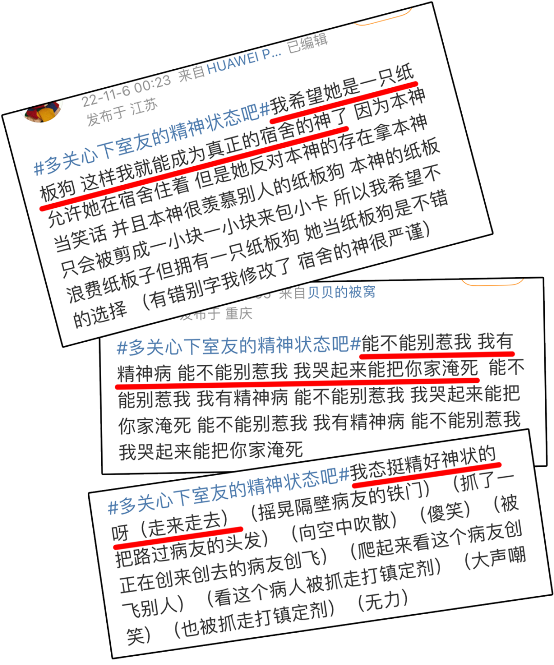 接着,我发现另一个热搜叫#多关心下室友的精神状态吧#,原来,全国的舍友都在社交媒体上发表大量的臆想和妄语。