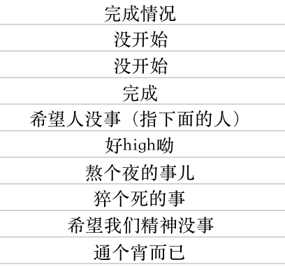 接着就是我们一个个排队被当众鞭尸。结尾,导师还为自己补一句说:“我一个抑郁症患者每天开会开的累死,还得给你们打气鼓励,谁给我打气啊”。