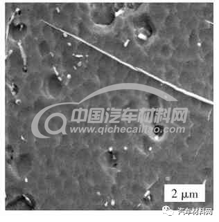 α 相为含氮铁素体,即氮在α-Fe 铁素体的间隙固溶体,590 ℃时,氮在α -Fe 中的最大溶解度为0.1%。渗氮过程也就是活性氮原子不断向基体中渗入和扩散的过程,当氮原子在α-Fe 铁素体中过饱和,以间隙化合物的形式析出γ′相,有很多不同的组织形态,如针状、颗粒状、脉状等。氮化物的析出位置一般为过共析钢,在晶界析出的比较多,在金相显微镜和低倍扫描电镜上显示为针状,如图17、图18 所示,但实际上该组织为类似于碳化物的条状或“刀片状”,主要是由于在某一特定晶界析出有关,如在高倍下的图19 及图20 所示;颗粒状、网状或脉状的析出氮化物不在晶界上,而在晶界内,各个氮化物类同于碳化物的析出,都是孤立存在的,如图19、图21~24 所示。