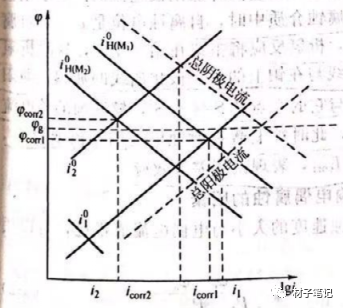 电位较负的金属M1在与电位较正的金属M2构成电偶后,受到了M2对它的阳极极化作用,通过了一个大小为Ig的净的电偶电流,打破了它没有与M2偶接时的自腐蚀状态,同时在自腐蚀电位时建立的电荷平衡也被打破。同理,M2也由于与M1的偶接而打破了在自腐蚀电位时建立的电荷平衡。这说明宏观腐蚀电池的作用将使微观腐蚀电池的电流发生改变,这种效应称为差异效应。如果宏观电偶腐蚀电池使内部腐蚀微电池电流减少,则此效应为正差异效应;相反,如果引起内部腐蚀微电池电流增加,则称为负差异效应。