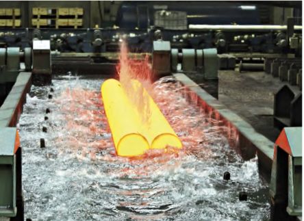 对于双相不锈钢的轧制生产来说,在适当的固溶退火温度进行固溶退火处理,随后立刻进行水淬,可得到最佳结果。重要的是,使材料从离开加热炉到水淬之间的时间尽可能地短,这样便最大程度地减少了热量损失,而在水淬至室温之前,热量损失可能导致有害相的析出。