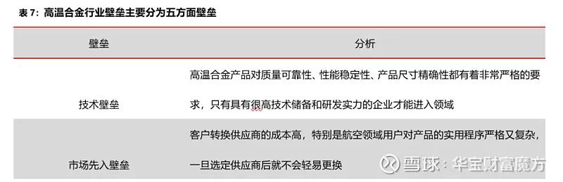 此外,由于高温合金材料及制品的“质量可靠性、性能稳定性、外观尺寸精确性”等方面极其苛刻的要求使得行业具有较高的进入壁垒,具有强垄断性和稳定性,新进入者面临较高的认证门槛、进入成本、资本壁垒和时间成本。