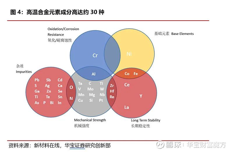 综合来看高温合金的技术瓶颈主要体现在成分、设备及热处理三个方面: